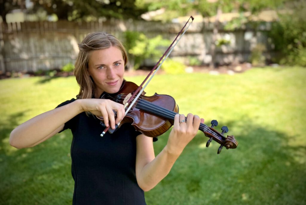 I first became interested in music as a child. My mother would sit at the piano and play songs we sang along to. This was something I enjoyed very much. My mother decided she wanted to learn the violin, and I begged to learn with her. She surprised my sister and me with violins and lessons we could all take together when I was six years old. When I turned eight, my mother started to give me piano lessons. I was so excited about being able to learn that I was up at 6 am, sitting at the piano, ready for my first lesson. Those two years were the start of my musical journey.